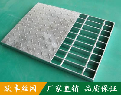 复合钢格栅是由有一定横跨承载能力的钢格栅及密封表面的花纹板构成的一种产品。复合钢格栅经热浸锌处理后,因热力会产生翘曲变形,尤其是选用较大型号的钢格栅,校平比较困难,请注意选型。复合钢格栅常用系列3钢格栅作底板,也可采用系列1或系列2钢格栅;花纹钢格栅常用3mm厚板,也可采用4mm,5mm、6mm的板。在复合钢格栅的正面或底面捍接钢网制成复网板,可防小件掉落,在粮仓、餐厅、仓库使用复合板,可防止老鼠等小动物进入。